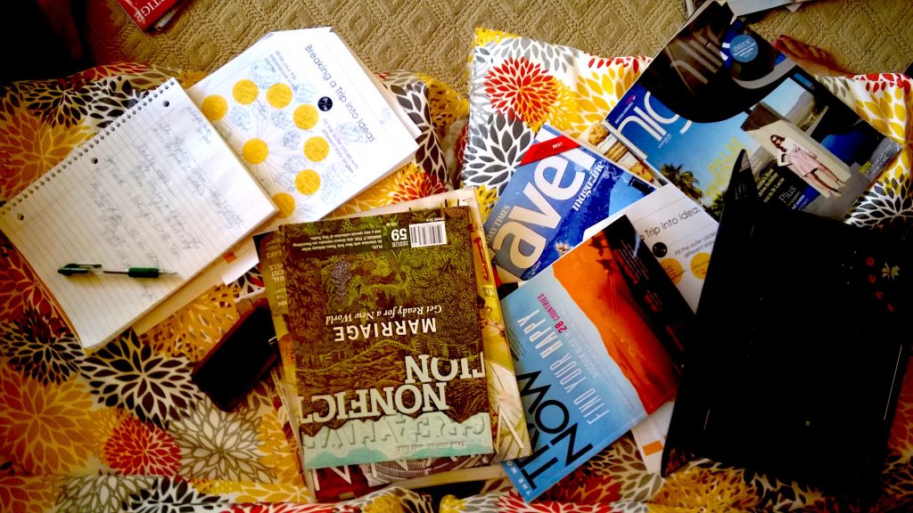 In between the group workshops, we’ll split up so you have time to leaf through and brainstorm using the magazines in our extensive library (the print collection that feeds the hundreds of magazine breakdowns in our Travel Magazine Database) while I do three one-on-one sessions with each attendee to attack issues tripping each of you up individually.